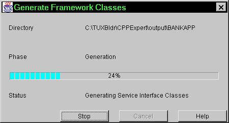 The Generate Framework Classes window allows you to generate the code and make files needed to compile the application within a specific environment.