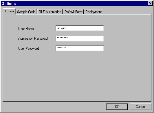 This brings up the default options window for logon settings as shown in Figure 3-2. (See Table 3-1 for a detailed explanation of what's needed for each field.)