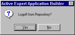 The Application Builder prompts you to log off the Contract Repository whenever you close the repository window (File->Close Repository from the menu bar) or when you close the workstation window (File->Close Workstation from the menu bar) if it is the last window open. Figure 3-17 shows the logoff window.