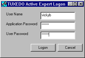 If you are running the Active Expert and the Contract Repository in the context of a secure TUXEDO application, and you are building and testing clients using ActiveX controls with a Windows development tool (Visual Basic, PowerBuilder, Visual C++)-the Active Expert prompts you for TUXEDO application and user passwords. (TUXEDO system access is not a problem when you use OLE automation servers.)