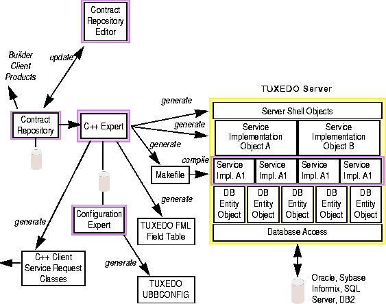 You cannot change the contents of the Contract Repository with the C++ Expert. If you want to modify the contents of the Contract Repository, you need to use the BEA TUXEDO Builder Contract Repository Editor. For more information about using the C++ Expert to view objects in the Contract Repository, refer to the Accessing Contract Repository Objects section.