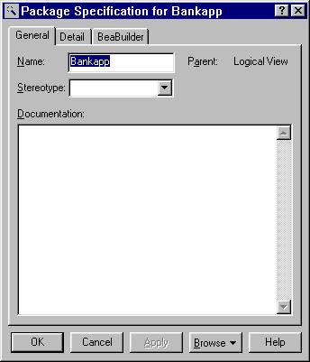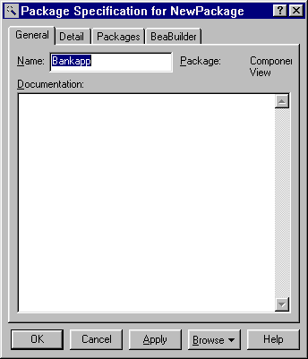 Now we create a new component package for Bankapp in the Component View. (Figure 2-12 shows the component package specification for Bankapp.)