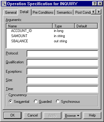 Figure 2-10 Operation Specification for Inquiry, Detail tab with Arguments