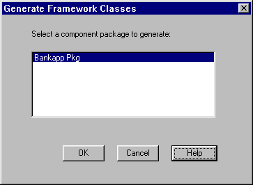 In order to generate classes, you must have at least one component package in the current Rational Rose model. If there are no component packages in the model, you get an alert message when you choose the Generate Classes menu option.