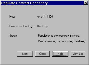 When the populate process completes successfully, the model elements in the chosen component package are available in the Contract Repository. (For information on working with the Contract Repostiory, refer to the online help for that product. Also, refer to Where to Find Related Information.)