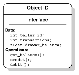 The object’s interface, described in the application’s OMG IDL file, identifies the set of data and operations that can be performed on an object. For example, the interface for a university teller object would identify: