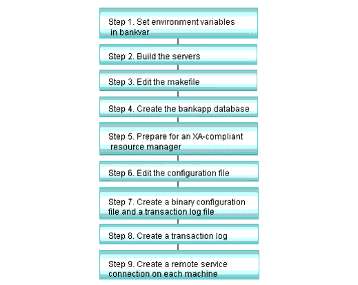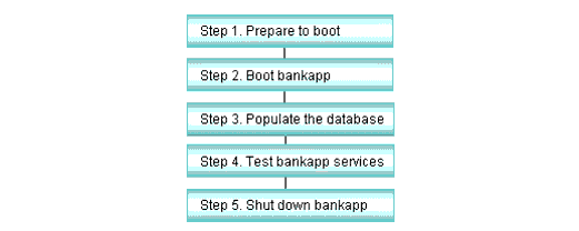 This documentation leads you through the procedures for booting bankapp, testing it by running various client programs and transactions, and shutting it down when you have finished. Click on any of the following tasks for instructions on completing that task.