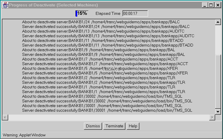 Figure 5-6: Progress of Deactivate Screen