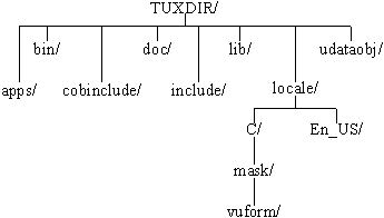The contents of each directory are described below. TUXDIR is the base directory for the BEA TUXEDO System software. TUXDIR must be an empty directory for which you have read, write, and search (execute) permissions. (In previous releases it was referred to as ROOTDIR.)