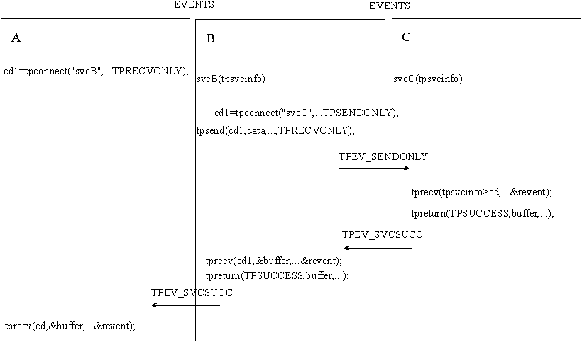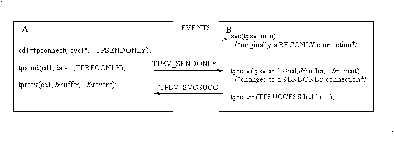They use tpsend() and tprecv() calls to send and receive data in conversations.