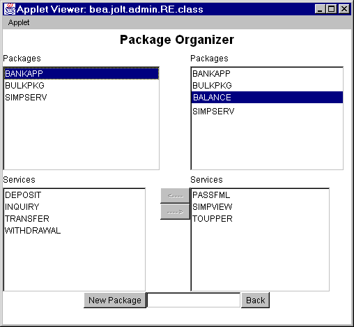 Services are definitions of available BEA Tuxedo services and can only be a part of a Jolt package.You must create the service as a part of a new or existing package.