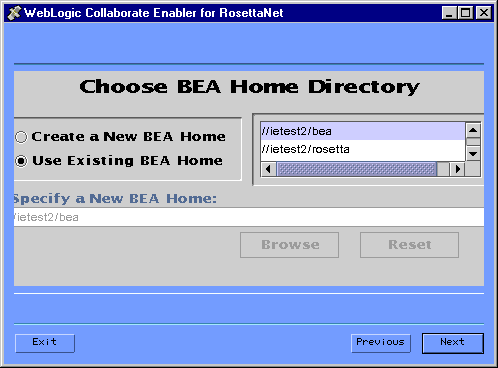 Note: When the product is installed, the bea home directory is created under $HOME. A beahomelist file which contains a list of known BEA home directories for the current user is created in the bea directory.