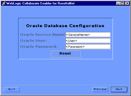 Note: To use an Oracle database, the following variables should be defined in the user you create for WebLogic Collaborate Enabler for RosettaNet. Contact your Oracle Database Administrator for more information.