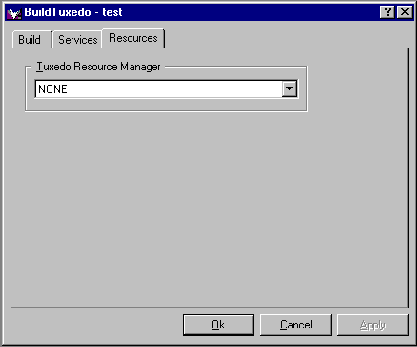 The Tuxedo Resource Manager field contains a list of BEA TUXEDO resource managers available on the system as defined in the