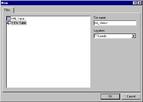 You must type You can open new (unnamed) view files in which a blank grid is created for the view, Viewx, where x is a value tracked by MFC and incremented by one each time you create a new view. You can specify a name if and when you save the view file. You can also edit an existing view file (either text or binary). Unless otherwise specified, files are saved in the directory where the file was opened in tabbed delimited format, with.v appended to the end of the filename when applicable. You can compile this file to produce either a 16- or 32-bit binary The Multiple Document Interface (MFC), as part of the basic framework, provides a multiple document architecture in which you can open documents and views, regardless of type, at the same time. Examples of this design are msdev, Excel, and Word. In BEA TUXEDO terms, you can open x number of FML tables and y number of VIEW Table files at any time, and then select to use any one of them. Documents look and feel like a workbook that contains tabs for each open document.
