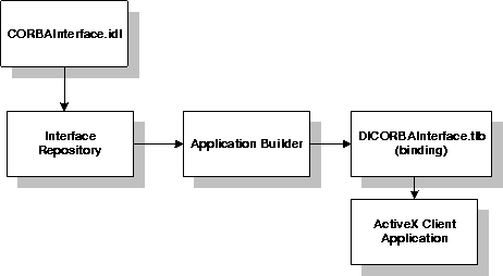 ActiveX client applications are not aware they are using the Interface Repository object. Like CORBA client applications, ActiveX client applications use the Bootstrap object to obtain a reference to the Interface Repository object.