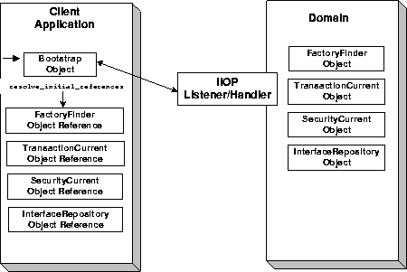 Before a CORBA client application using DII can browse the Interface Repository in a WLE domain, the client application needs to obtain an object reference for the InterfaceRepository object in that domain. CORBA client applications using DII use the Bootstrap object to obtain the object reference.