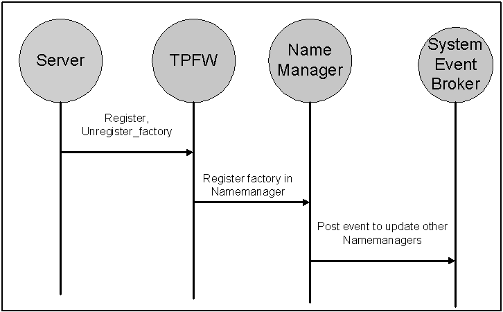 The NameManager is not a naming service, such as CORBAservices Naming Service, but is merely a vehicle for storing registered factories.