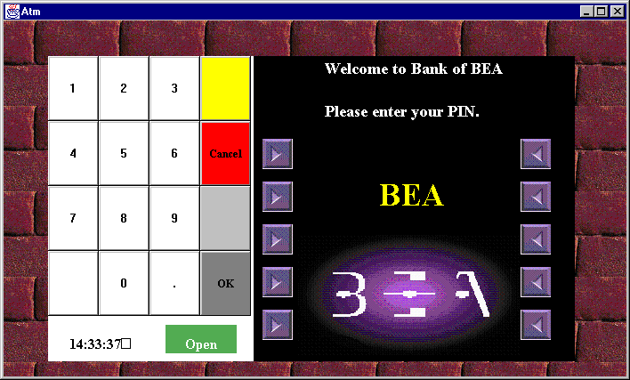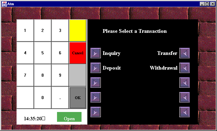 The GUI for the ATM client application appears. Figure 3-2 shows the GUI for the ATM client application.