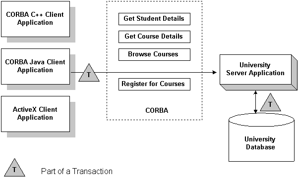 Refer to In the Transactions sample application, students can register for classes. The operation of registering for courses is executed within the scope of a transaction. The Transactions sample application works in the following way: