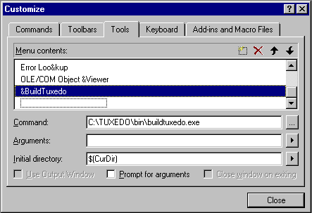 Adding BuildTuxedo to the MSDEV Tools Menu
