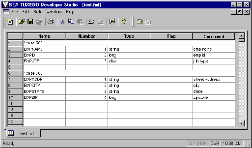 You must type You can open new (unnamed) view files in which a blank grid is created for the view, Viewx, where x is a value tracked by MFC and incremented by one each time you create a new view. You can specify a name if and when you save the view file. You can also edit an existing view file (either text or binary). Unless otherwise specified, files are saved in the directory where the file was opened in tabbed delimited format, with.v appended to the end of the filename when applicable. You can compile this file to produce either a 16- or 32-bit binary The Multiple Document Interface (MFC), as part of the basic framework, provides a multiple document architecture in which you can open documents and views, regardless of type, at the same time. Examples of this design are msdev, Excel, and Word. In BEA TUXEDO terms, you can open x number of FML tables and y number of VIEW Table files at any time, and then select to use any one of them. Documents look and feel like a workbook that contains tabs for each open document.