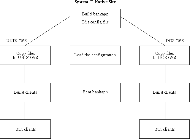 bankapp software on the native site. The procedure for doing this is described in the BEA TUXEDO Application Development Guide and in the README file found in $TUXDIR/apps/bankapp on the master machine where your BEA TUXEDO system software is installed.