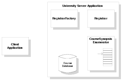 The fundamental design problem for the University server application is how to handle a list of course synopses that is potentially too big to be returned to the client application in a single response. Therefore, the solution centers on the following: