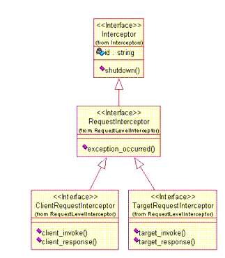 interface is defined as the base interface of all types of interceptors, including request-level interceptors. This interface contains the set of operations and attributes that are supported by all types of interceptors. The Interceptors::Interceptor