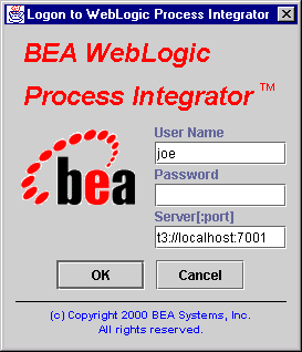 Figure 5-1 Logon to WebLogic Process Integrator Dialog Box