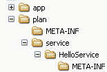 The directory plan/HelloService/META-INF contains a file named annotation-overrides.xml. This artifact corresponds to the annotation manifest file in the app/OAMEar/service/META-INF directory. This annotation overrides file contains the following XML:
