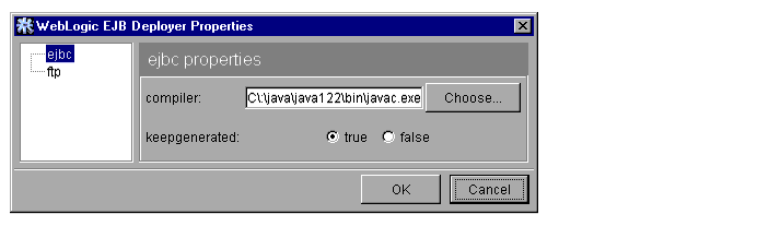 By default, ejbc uses javac as a compiler. For faster performance, specify a different compiler (such as Symantec's sj) by setting up ejbc preferences within DeployerTool. See