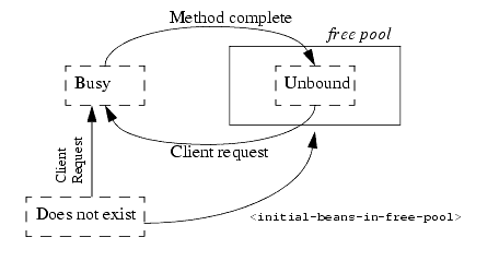 Note: The maximum size of the free pool is limited either by available memory, or the value of the max-beans-in-free-pool deployment element.
