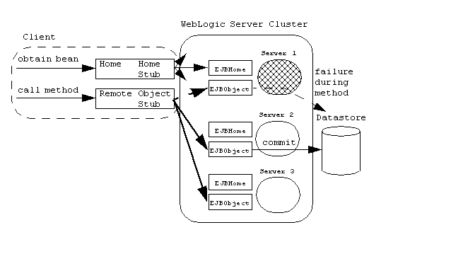 This section describes the behavior of EJBs and their associated transactions in a WebLogic Server cluster, and explains key deployment properties that affect EJB behavior in a cluster.