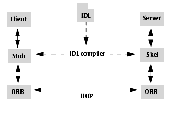 In CORBA, interfaces to remote objects are described in a platform-neutral interface definition language (IDL). To map the IDL to a specific language, the IDL is compiled with an IDL compiler. The IDL compiler generates a number of classes such as stubs and skeletons which are used by the client and server for obtaining references to remote objects, forwarding requests, and marshalling incoming calls.