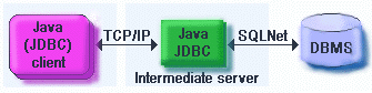 Just as with two-tier drivers, there are several possible multitier JDBC architectures, based on the type of intermediate server implemented, such as: