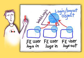 "This panel," the Java engineer said, pointing to the list of users in the upper right corner of the application, "has registered an interest with WebLogic Server in Login/logout events. The Login/logout object on the server sends an event to WebLogic Server whenever it changes. The end result is instant updates. It's a very simple model, really easy to use."