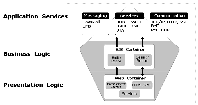 WebLogic Server implements standard J2EE technologies to provide data and access services to applications and components. These services include the following APIs: