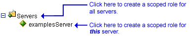 To create a scoped role for all servers, right-click Servers. To create a scoped role for a particular server, expand Servers, then right-click the name of a server. Figure 4-11 illustrates where you might click, using the examplesServer as an example.