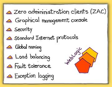 - WebLogic includes a console for monitoring and managing a WebLogic