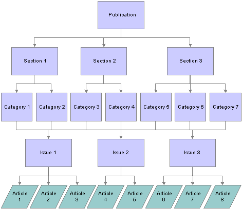 Web Magazine presents information in the form of a hierarchy as demonstrated in this diagram.