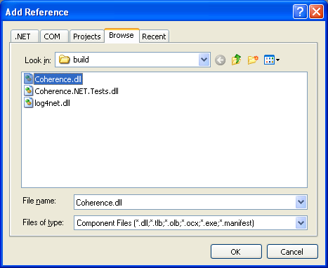 Creating a reference to the Coherence.dll: