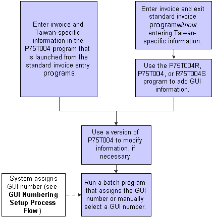 This process flow shows how you can enter GUI information when you enter an invoice or at a later time.