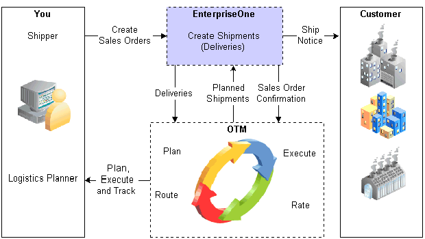 The Oracle Transportation Management system delivers robust transportation planning and execution capabilities for manufacturers, retailers, distributors, and third-party logistics providers. The JD Edwards EnterpriseOne Sales Order Management system communicates with the Oracle Transportation Management through these integration points: