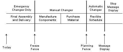 The time fences define how priority decisions are made with respect to scheduling supply to meet demand. Time fences denote where defined planning rules are applied in balancing the supply to meet existing demand. Time fences apply to sources of demand that are used to plan calculations. Time fence rules stipulate how forecast, customer demand, or a mixture of these are used during the netting calculations when you are establishing the schedule.