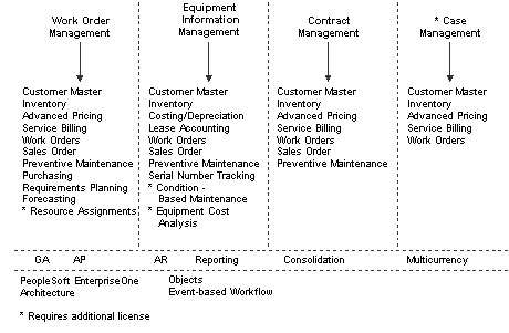 Service Management also integrates with other JD Edwards EnterpriseOne product features, including: