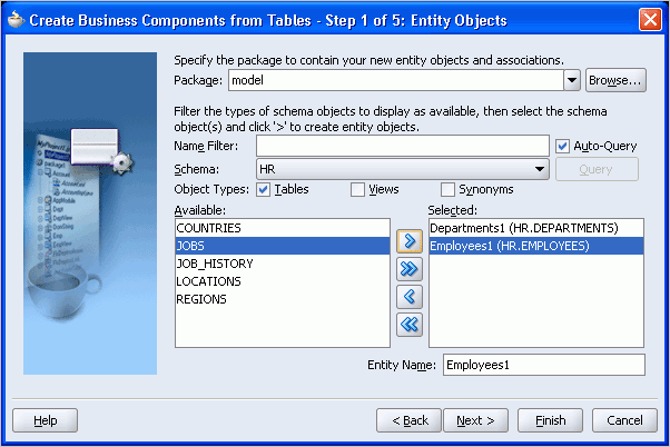 表をアプリケーションで表示および編集できるようにするADFビジネス・コンポーネントを作成します。