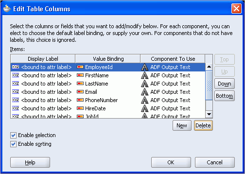 これらの機能はすべて完全にカスタマイズ可能です。このマニュアルで作成するアプリケーションのADF中間層を作成するには、データベース表からADFビジネス・コンポーネントを作成します。