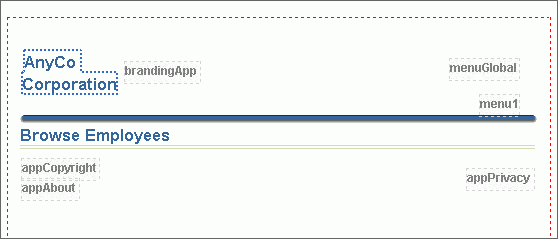 コンポーネントでは、ページ全体をレイアウトできます。ページレベルおよびアプリケーションレベルのテキスト、イメージ、アクションおよびボタンをページの特定の領域にレイアウトするためのファセットがサポートされています。