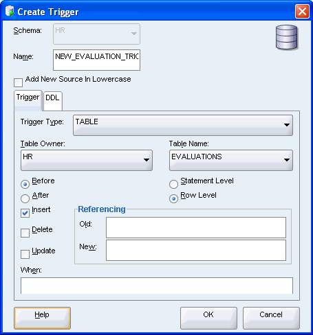 CREATE OR REPLACE TRIGGER new_evaluation_trigger BEFORE INSERT ON evaluations FOR EACH ROW BEGIN :NEW.evaluation_id := evaluations_seq.NEXTVAL; END;